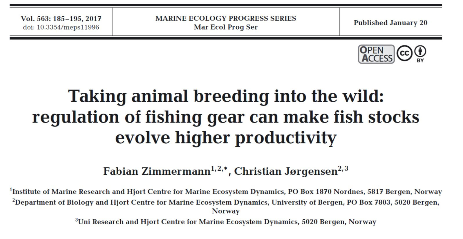 Fishing-induced evolution is commonly believed to be an inevitable result of fishing with mostly negative effects, which can be only reduced with lower fishing pressure and thus stands in conflict with the goal of maximizing sustainable catches. This perspective also stems from the fact that today’s fisheries management focuses mostly on fishing mortality alone, although theory and the literature show that size selectivity is equally important in determining the degree and direction of evolutionary change. In their recent paper published in Marine Ecology Progress Series, Fabian Zimmermann and Christian Jørgensen investigated therefore in an evolutionary model of Northeast Arctic cod how the size selectivities of different fishing gear mixes in combination with a range of target sizes and fishing intensities affects the performance of the stock and fishery against major management objectives.