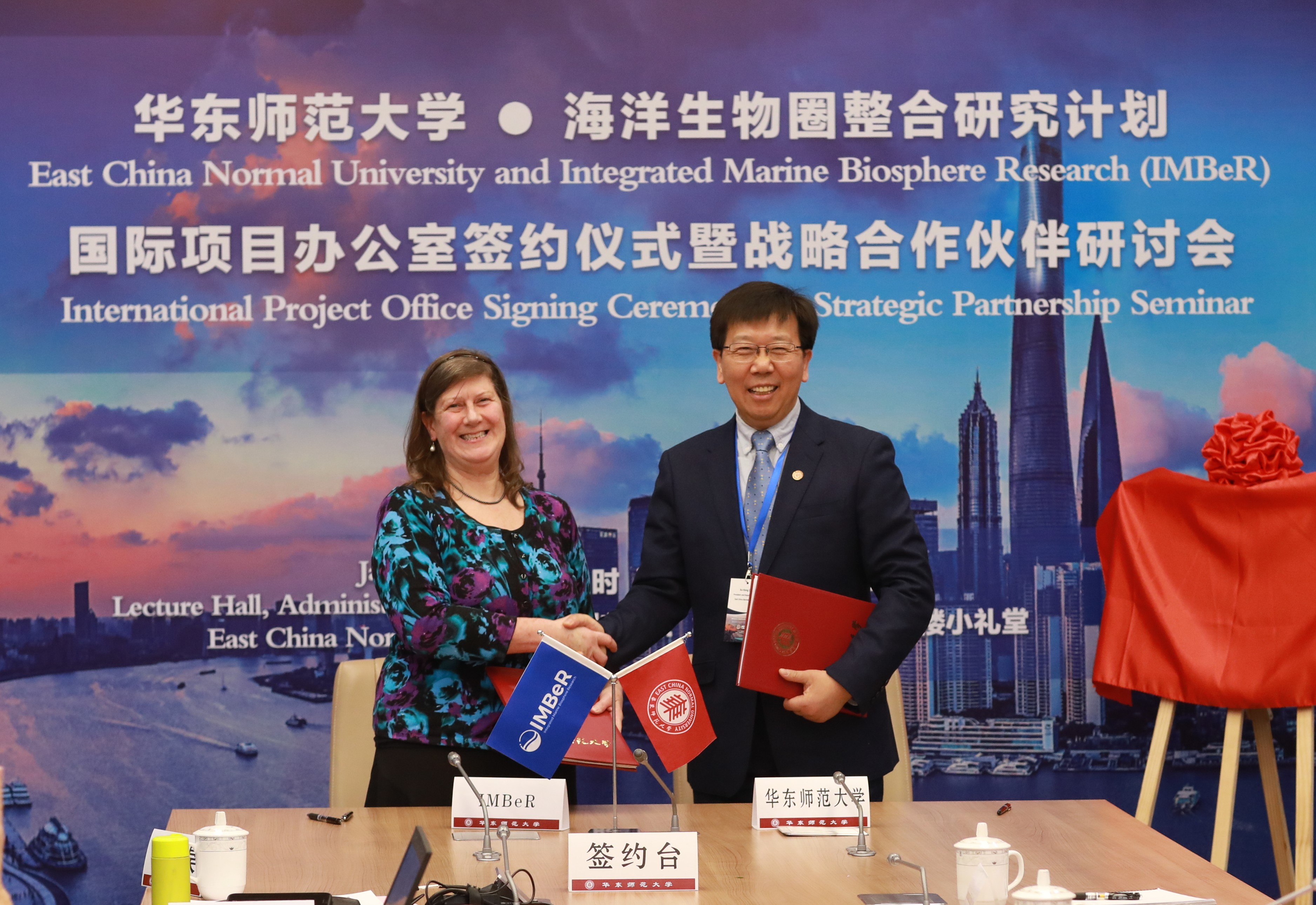 A Memorandum of Understanding to support the IMBeR IPO-China for the next five years was signed by Carol Robinson and the ECNU President Prof. Qian Xuhong. The office is also supported by a consortium of supporting marine institutions and projects.
